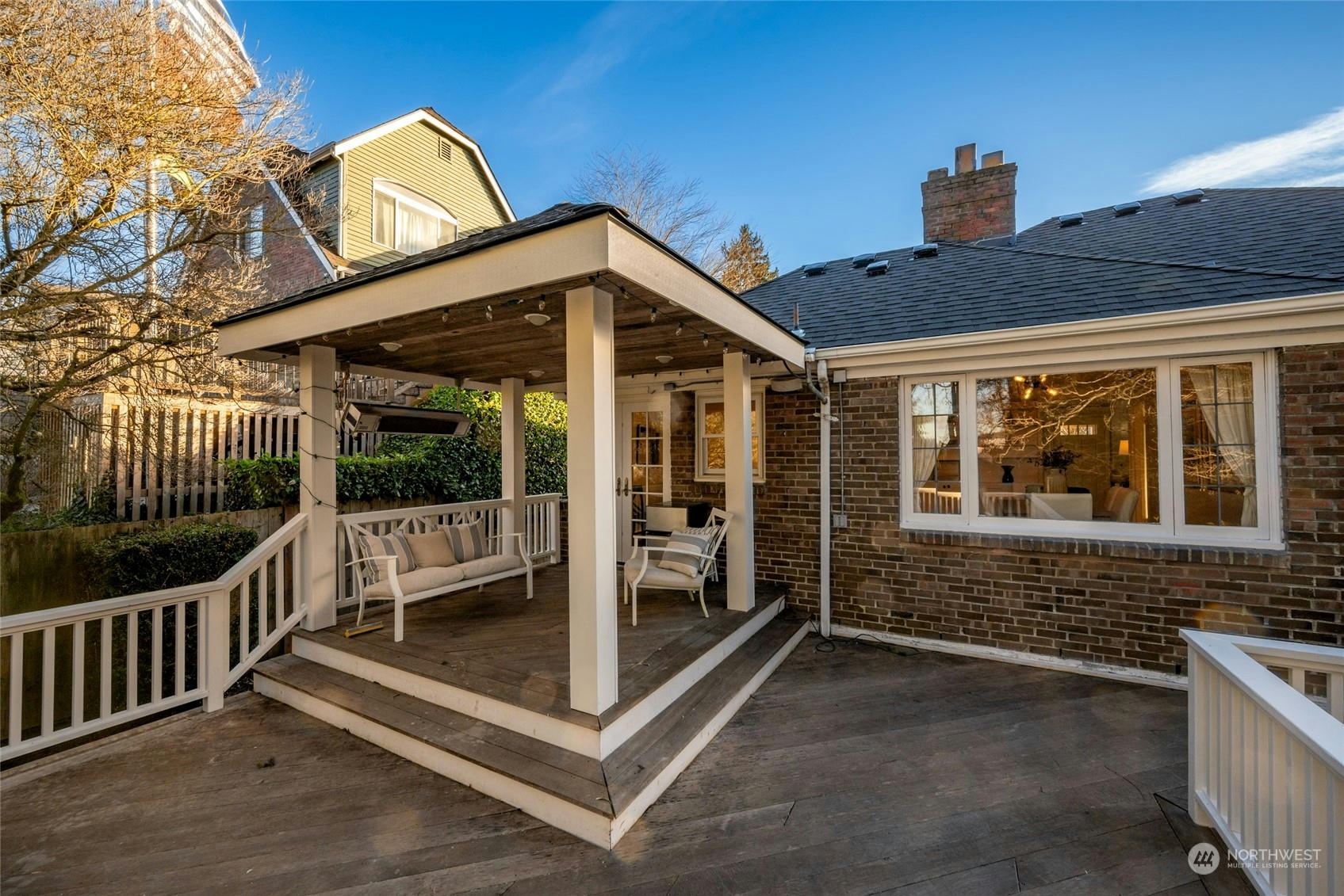 Quintessential Old World charm meets the modern world in this adorable brick home on an oversized lot within walking distance of the light rail. Lower-level Primary with shower and tub provides the luxury we all crave. The outdoor entertaining areas are fun and practical with a gas-heated covered Brazilian hardwd porch plus an outdoor fireplace and patio. New Roof, freshly finished hardwoods and new carpet make it ready to move in. Great potential in the yard large enough for urban gardens (spring will be here soon!), pets, play or a future DADU. FINALLY – A GREAT HOME!