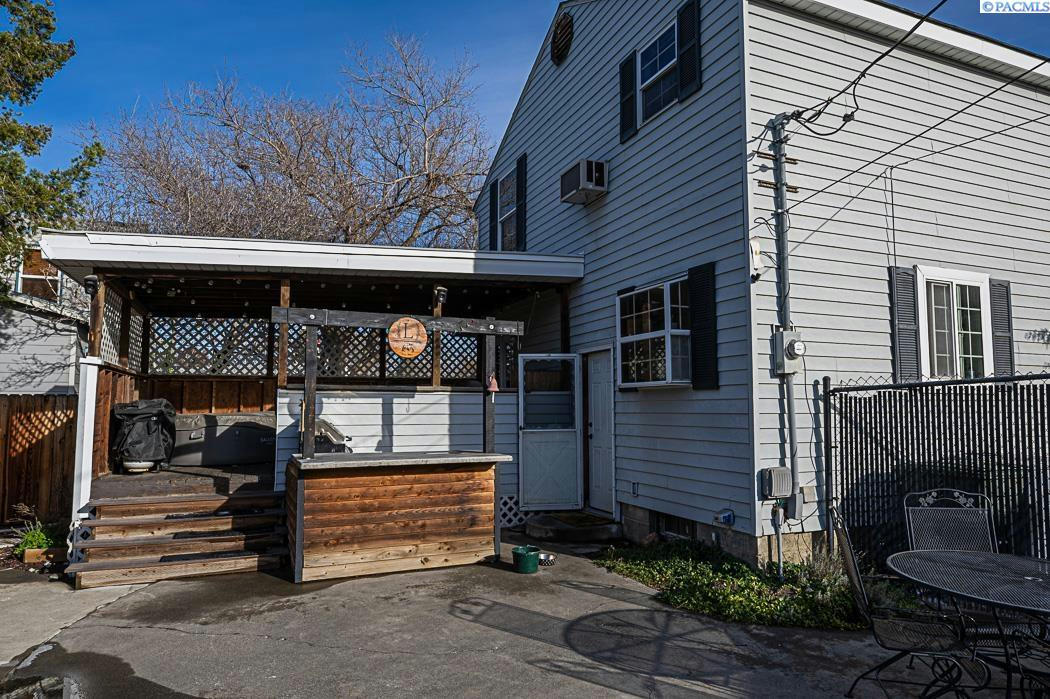 Discover the enchantment of this captivating "F" house nestled in a serene central Richland neighborhood with irresistible curb appeal! Immerse yourself in the perfect fusion of historic charm and contemporary comforts as this meticulously updated home showcases its original hardwood floors. Fall in love with the bright and spacious living room, adorned with a rustic accent wall and a gas stove, creating an inviting atmosphere for cozy fall and winter gatherings. The formal dining space features a ship lap accent ceiling, adding a touch of elegance to your dining experience. The light-filled kitchen is a chef's delight, boasting tile flooring, butcher block countertops, a pantry, updated appliances, and a garden window that brings the outdoors in. Upstairs, three charming bedrooms await, accompanied by a full bath, while the basement offers an additional half bath, a large family room, a laundry room, and a versatile flex room, perfect for an office or workout space. Step into the dreamy backyard oasis, fully fenced for privacy, and featuring a covered deck with an eating bar. Immerse yourself in the in-ground swimming pool, surrounded by an expansive patio space, a built-in kitchen/bar, mature landscaping, shade trees, and ample room for a garden. Completing the outdoor experience are a detached garage and a garden shed. Call your favorite realtor for a showing!